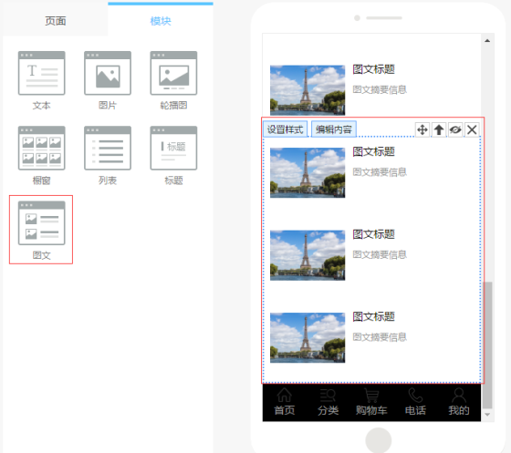 在页面中设计好的模块,点击“复制模块”按钮弹出模块重命名:为您的模块起个名字下次使用时便于查找。保存好的模块会放到“我的”模块中,可重命名、添加到页面、删除模块,删除后不可恢复添加到支持设计的页面中时,如果修改了原来的模块,那么新添加到页面中时是修改后的样式。如果删除了原来的模块,不影响“我的”模块中的添加;也不影响已经添加到页面中的模块。