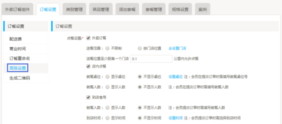 “千呼万唤始出来”这次出来不遮面了,好多大佬们都在问为什么小程序还没有订餐的呢【生气脸】,这次是真的出来了,每次小程序的上线都是程序猿提刀,产品汪拔枪的对决,谁赢了大家都看出来了吧~下面就为您介绍一下微信小程序的使用。首先您在“微网站”添加OTO的餐饮功能,配置好后设置为在栏目中显示,同时也会自动在小程序的栏目中显示了哦~咱们的“外卖订餐”功能包括:外卖订餐、店内点餐和到店食用三种方式组合或者单个使用。 1、外卖订餐:设置外卖配送的范围,会员的位置在您设置的范围内方可订餐~ 2、店内点餐:开启桌位号、点餐