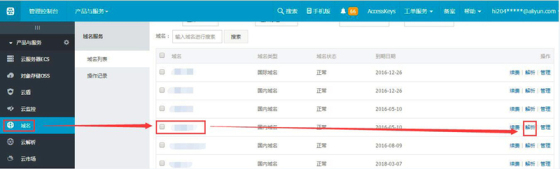 第一步:进入万网域名管理页面,找到您要解析的域名,点击解析,进入下一个页面第二步:现在已经进入域名解析的首页,点击“进入高级设置”,如下图:第三步:进入具体解析页面之后,添加具体解析记录,点击“添加解析”如下图:第四步,输入具体解析记录,记录类型选择“A”,主机记录输入“@”,记录值输入客服提供给您的对应A记录值,然后点保存。如下图:第五步:输入具体解析记录,记录类型选择“CNAME”,主机记录输入“www”,记录值输入客服提供给您的别名解析记录,然后点保存。如下图:操作完成,如下图: